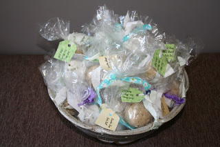 Mix dry together first and then add the rest, if isn't molding well add little drops of water but not a lot to get it to mold. Then we had molds we put them in or make into balls. Let them dry and sit for 24 hours. I bought special bags for them since I was selling them and cut fabric for the ribbon.